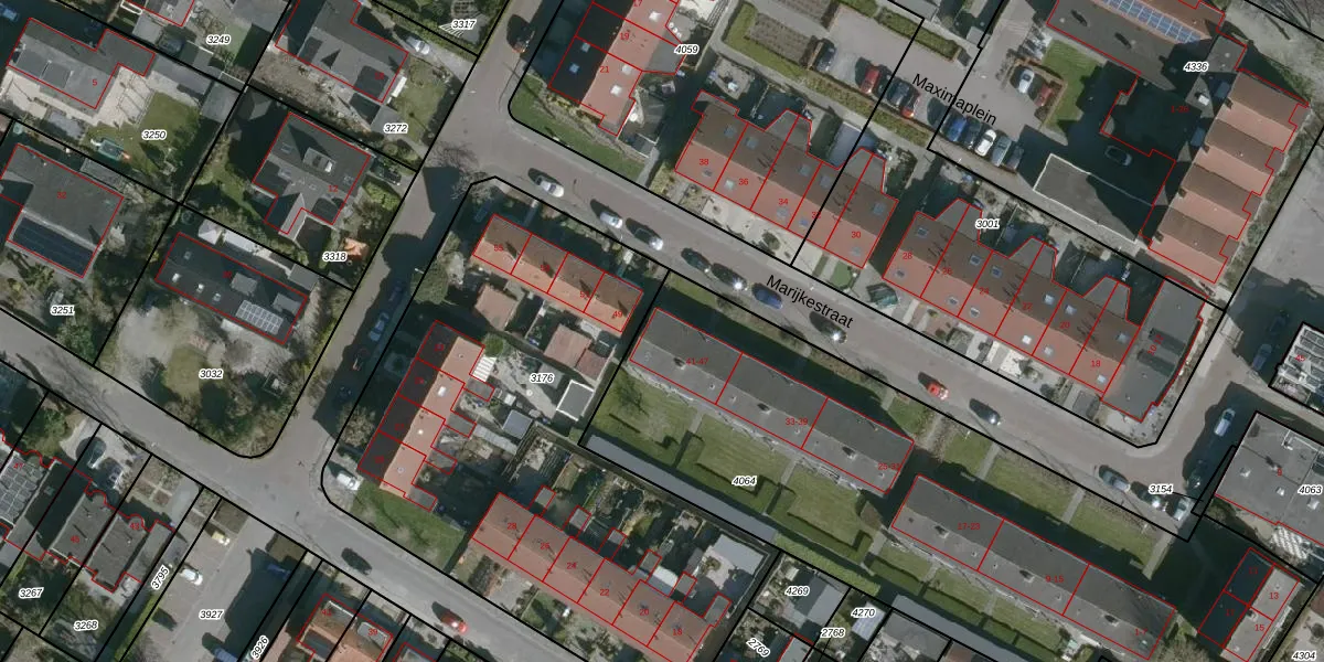 Het perceel waarop Marijkestraat 43 staat heeft een oppervlakte van 3108 m². Dit is een zeer groot perceel. De perceeloppervlakte wordt geregistreerd door het Kadaster. Gedetailleerde informatie over de maten van dit perceel kunt u vinden in het rapport Kadastrale kaart met maatvoering van Marijkestraat 43.
