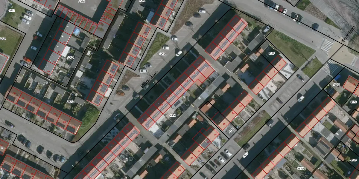 Prunuslaan 15 is gelegen op kadastraal perceel OGP00A4560. Deze kadastrale aanduiding is uniek en wordt gebruikt door het Kadaster om eigendomsrechten en andere zakelijke rechten vast te leggen. Het perceel maakt onderdeel uit van de kadastrale gemeente Ooltgensplaat.