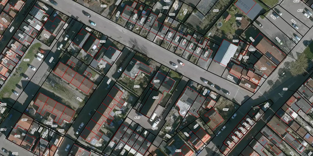 Gebruik de zoekbalk of klik op een perceel voor informatie over de adressen binnen dit perceel.
