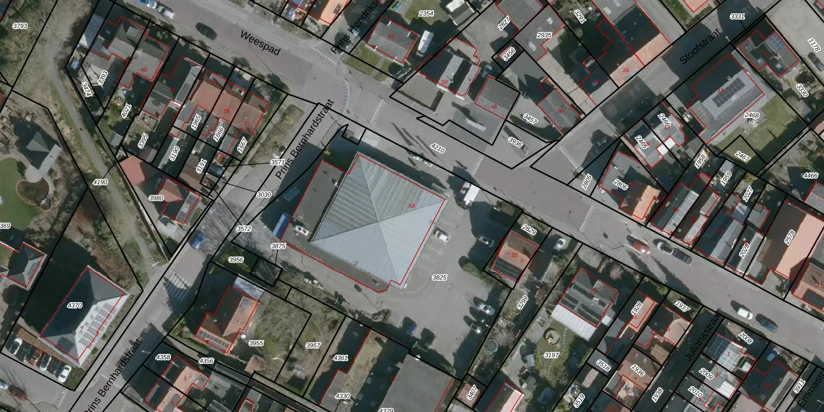 Het perceel waarop Weespad 33 staat heeft een oppervlakte van 2365 m². Dit is een zeer groot perceel. De perceeloppervlakte wordt geregistreerd door het Kadaster. Gedetailleerde informatie over de maten van dit perceel kunt u vinden in het rapport Kadastrale kaart met maatvoering van Weespad 33.