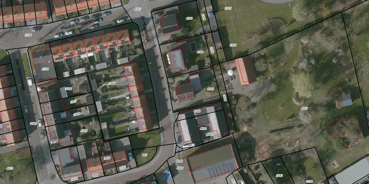 Het perceel waarop 1e Hogendijk 4 staat heeft een oppervlakte van 495 m². Dit is een groot perceel. De perceeloppervlakte wordt geregistreerd door het Kadaster. Gedetailleerde informatie over de maten van dit perceel kunt u vinden in het rapport Kadastrale kaart met maatvoering van 1e Hogendijk 4.