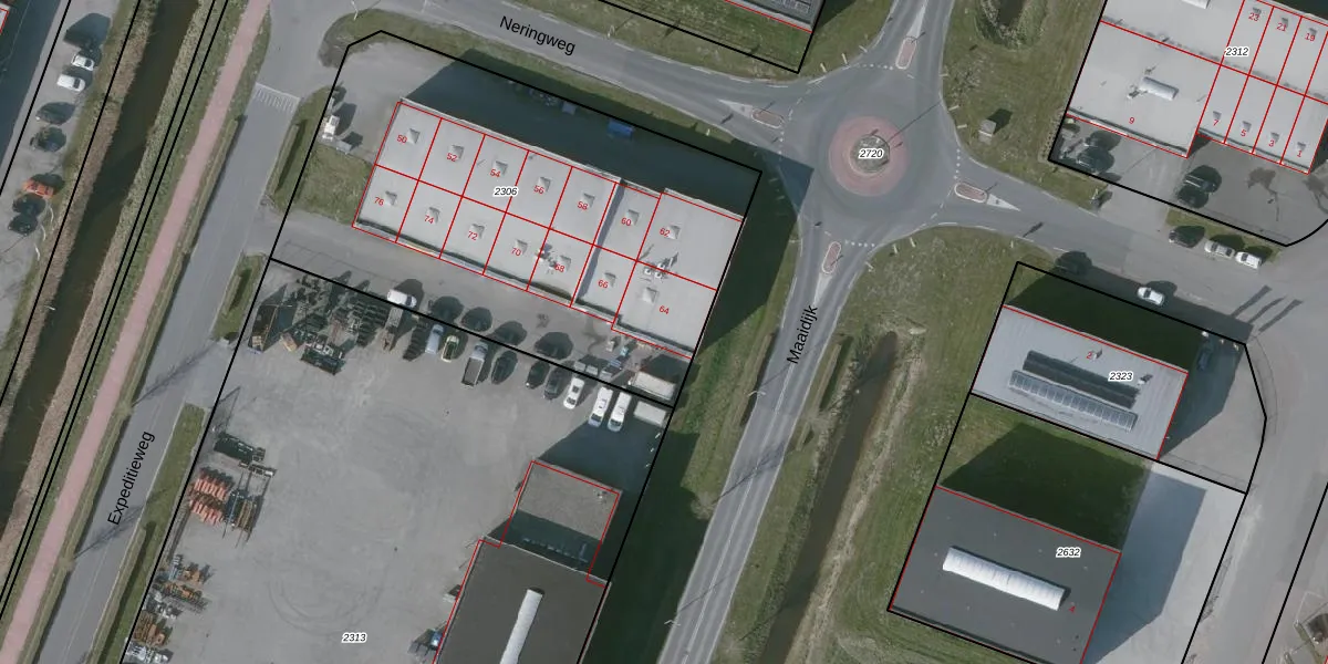 Expeditieweg 64 is gelegen op kadastraal perceel OBG00P2306. Deze kadastrale aanduiding is uniek en wordt gebruikt door het Kadaster om eigendomsrechten en andere zakelijke rechten vast te leggen. Het perceel maakt onderdeel uit van de kadastrale gemeente Oostburg.