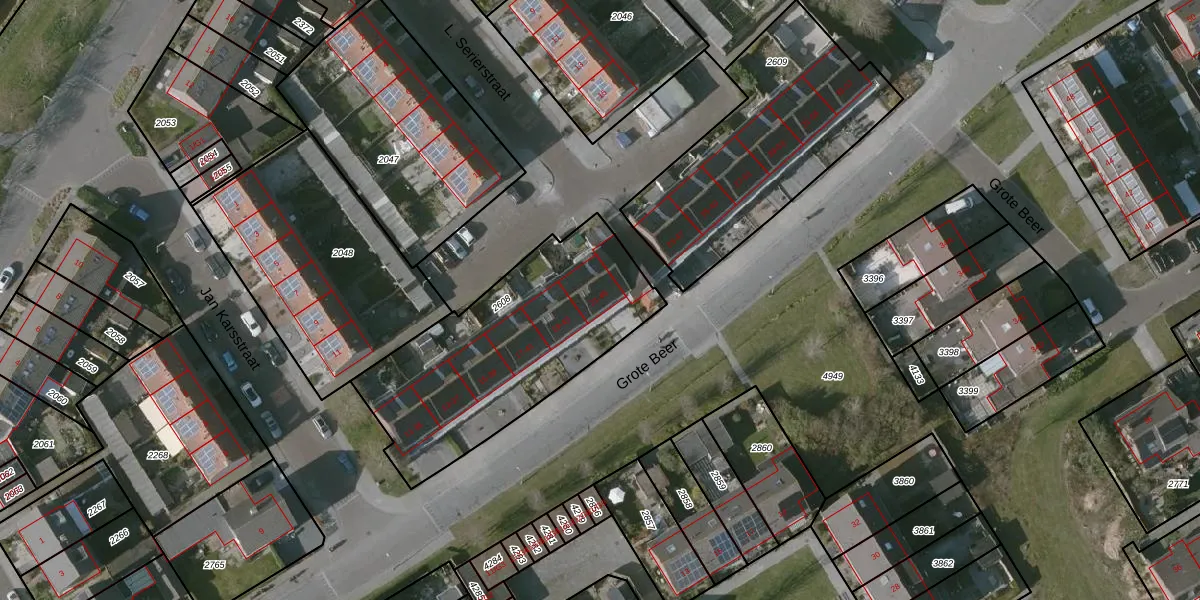 Grote Beer 21 is gelegen op kadastraal perceel OBG00E2608. Deze kadastrale aanduiding is uniek en wordt gebruikt door het Kadaster om eigendomsrechten en andere zakelijke rechten vast te leggen. Het perceel maakt onderdeel uit van de kadastrale gemeente Oostburg.