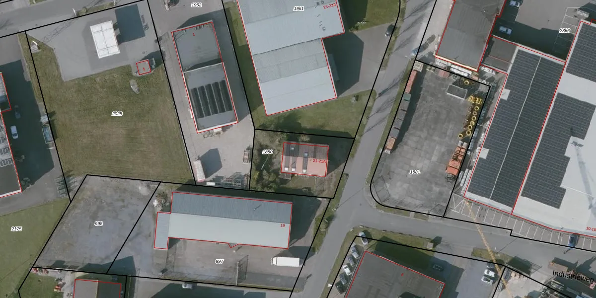 Industrieweg 21 is gelegen op kadastraal perceel OBG00P1880. Deze kadastrale aanduiding is uniek en wordt gebruikt door het Kadaster om eigendomsrechten en andere zakelijke rechten vast te leggen. Het perceel maakt onderdeel uit van de kadastrale gemeente Oostburg.