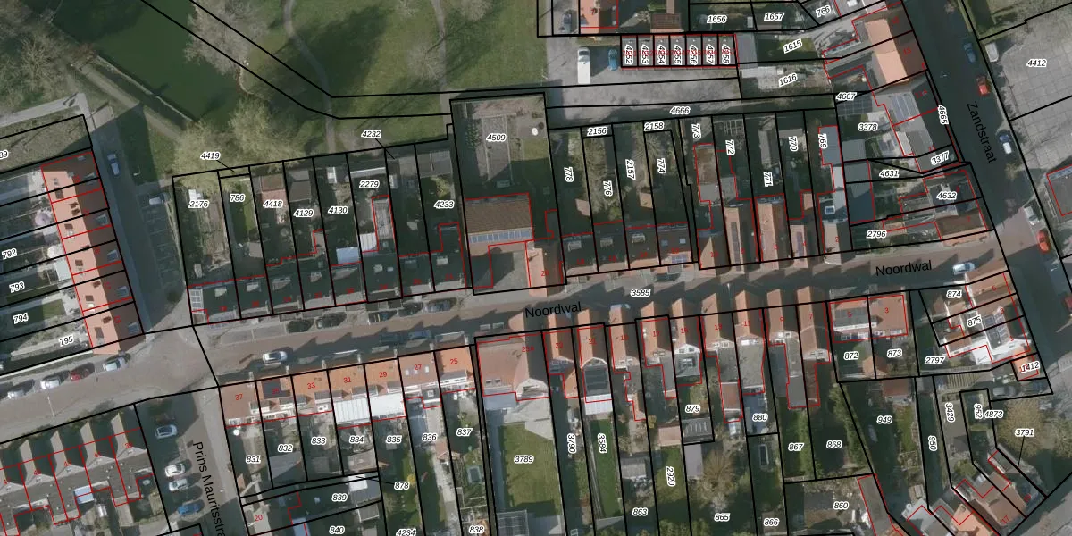 Het perceel waarop Noordwal 20 staat heeft een oppervlakte van 625 m². Dit is een groot perceel. De perceeloppervlakte wordt geregistreerd door het Kadaster. Gedetailleerde informatie over de maten van dit perceel kunt u vinden in het rapport Kadastrale kaart met maatvoering van Noordwal 20.