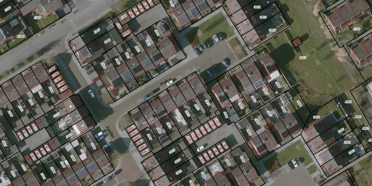 Het perceel waarop Pollux 12 staat heeft een oppervlakte van 158 m². Dit is een middelgroot perceel. De perceeloppervlakte wordt geregistreerd door het Kadaster. Gedetailleerde informatie over de maten van dit perceel kunt u vinden in het rapport Kadastrale kaart met maatvoering van Pollux 12.
