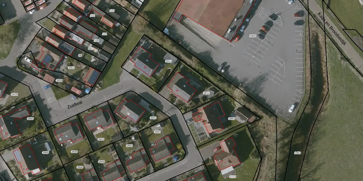 Zuidwal 28 is gelegen op kadastraal perceel OBG00E3912. Deze kadastrale aanduiding is uniek en wordt gebruikt door het Kadaster om eigendomsrechten en andere zakelijke rechten vast te leggen. Het perceel maakt onderdeel uit van de kadastrale gemeente Oostburg.
