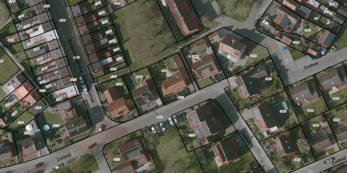 Zuidwal 9 is gelegen op kadastraal perceel OBG00E4964. Deze kadastrale aanduiding is uniek en wordt gebruikt door het Kadaster om eigendomsrechten en andere zakelijke rechten vast te leggen. Het perceel maakt onderdeel uit van de kadastrale gemeente Oostburg.