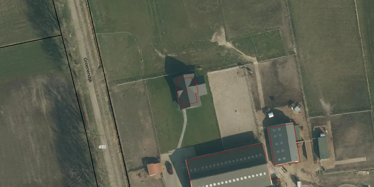 Het perceel waarop Groenendijk 64 staat heeft een oppervlakte van 13,1 ha. Dit is een zeer groot perceel. De perceeloppervlakte wordt geregistreerd door het Kadaster. Gedetailleerde informatie over de maten van dit perceel kunt u vinden in het rapport Kadastrale kaart met maatvoering van Groenendijk 64.