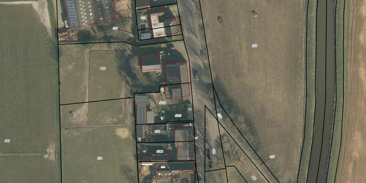 Het perceel waarop Hoge Dijk 16 staat heeft een oppervlakte van 590 m². Dit is een groot perceel. De perceeloppervlakte wordt geregistreerd door het Kadaster. Gedetailleerde informatie over de maten van dit perceel kunt u vinden in het rapport Kadastrale kaart met maatvoering van Hoge Dijk 16.