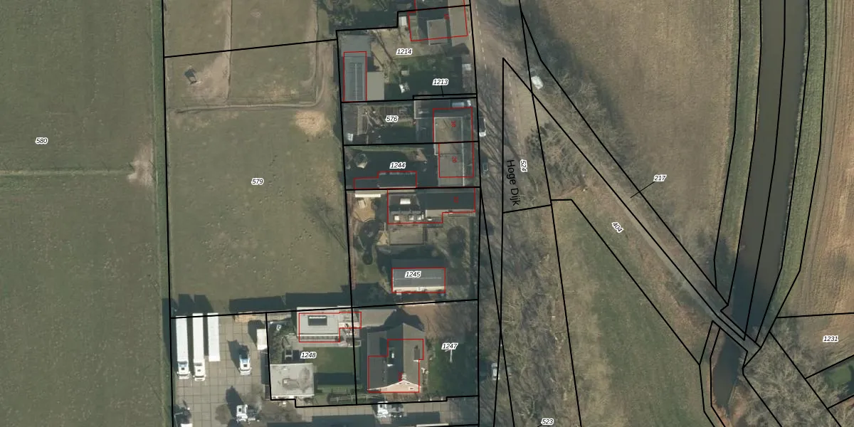 Het perceel waarop Hoge Dijk 22 staat heeft een oppervlakte van 862 m². Dit is een groot perceel. De perceeloppervlakte wordt geregistreerd door het Kadaster. Gedetailleerde informatie over de maten van dit perceel kunt u vinden in het rapport Kadastrale kaart met maatvoering van Hoge Dijk 22.