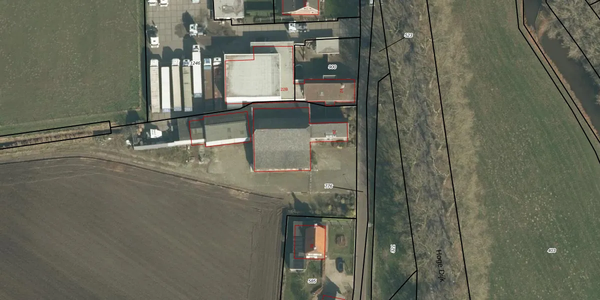 Het perceel waarop Hoge Dijk 26 staat heeft een oppervlakte van 1,6 ha. Dit is een zeer groot perceel. De perceeloppervlakte wordt geregistreerd door het Kadaster. Gedetailleerde informatie over de maten van dit perceel kunt u vinden in het rapport Kadastrale kaart met maatvoering van Hoge Dijk 26.