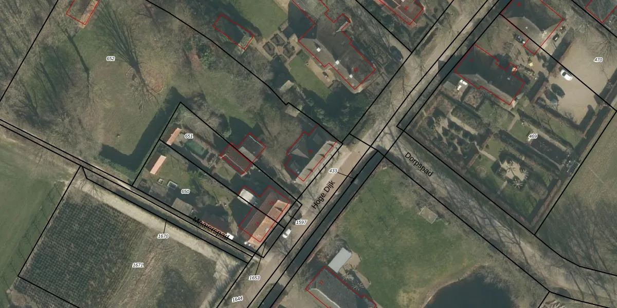 Het perceel waarop Hoge Dijk 70 staat heeft een oppervlakte van 3990 m². Dit is een zeer groot perceel. De perceeloppervlakte wordt geregistreerd door het Kadaster. Gedetailleerde informatie over de maten van dit perceel kunt u vinden in het rapport Kadastrale kaart met maatvoering van Hoge Dijk 70.