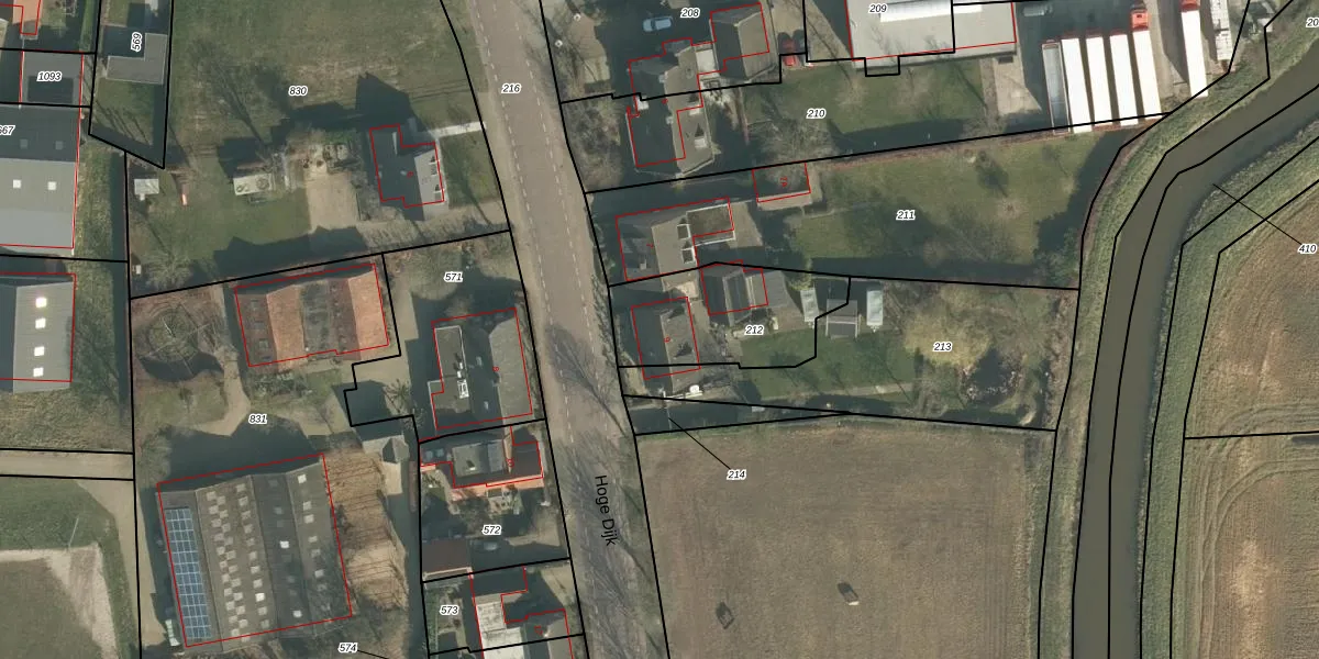 Het perceel waarop Hoge Dijk 9 staat heeft een oppervlakte van 450 m². Dit is een groot perceel. De perceeloppervlakte wordt geregistreerd door het Kadaster. Gedetailleerde informatie over de maten van dit perceel kunt u vinden in het rapport Kadastrale kaart met maatvoering van Hoge Dijk 9.