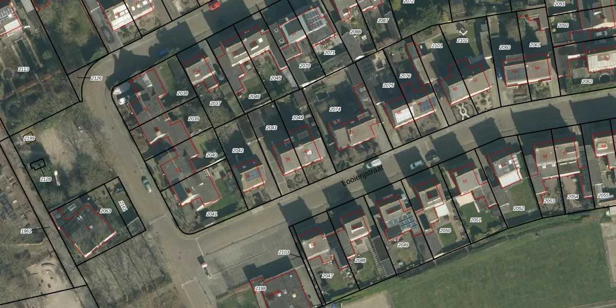 Gebruik de zoekbalk of klik op een perceel voor informatie over de adressen binnen dit perceel.