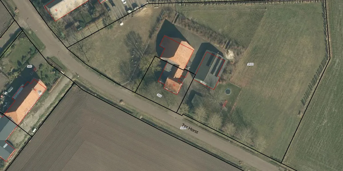Het perceel waarop Ter Horst 21 staat heeft een oppervlakte van 650 m². Dit is een groot perceel. De perceeloppervlakte wordt geregistreerd door het Kadaster. Gedetailleerde informatie over de maten van dit perceel kunt u vinden in het rapport Kadastrale kaart met maatvoering van Ter Horst 21.
