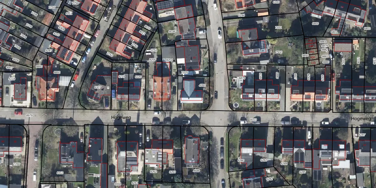 Gebruik de zoekbalk of klik op een perceel voor informatie over de adressen binnen dit perceel.