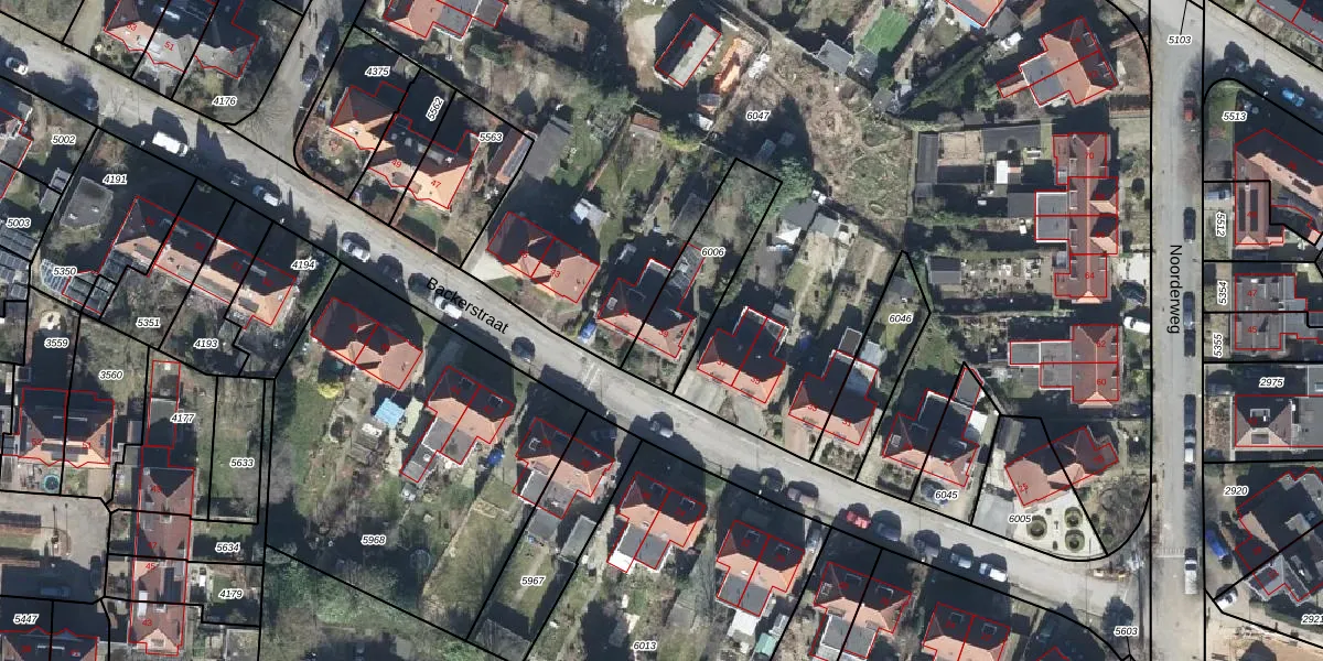 Gebruik de zoekbalk of klik op een perceel voor informatie over de adressen binnen dit perceel.