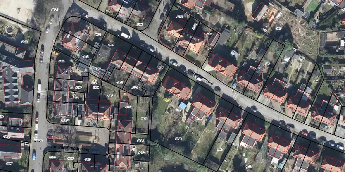 Het perceel waarop Backerstraat 48 staat heeft een oppervlakte van 1684 m². Dit is een zeer groot perceel. De perceeloppervlakte wordt geregistreerd door het Kadaster. Gedetailleerde informatie over de maten van dit perceel kunt u vinden in het rapport Kadastrale kaart met maatvoering van Backerstraat 48.