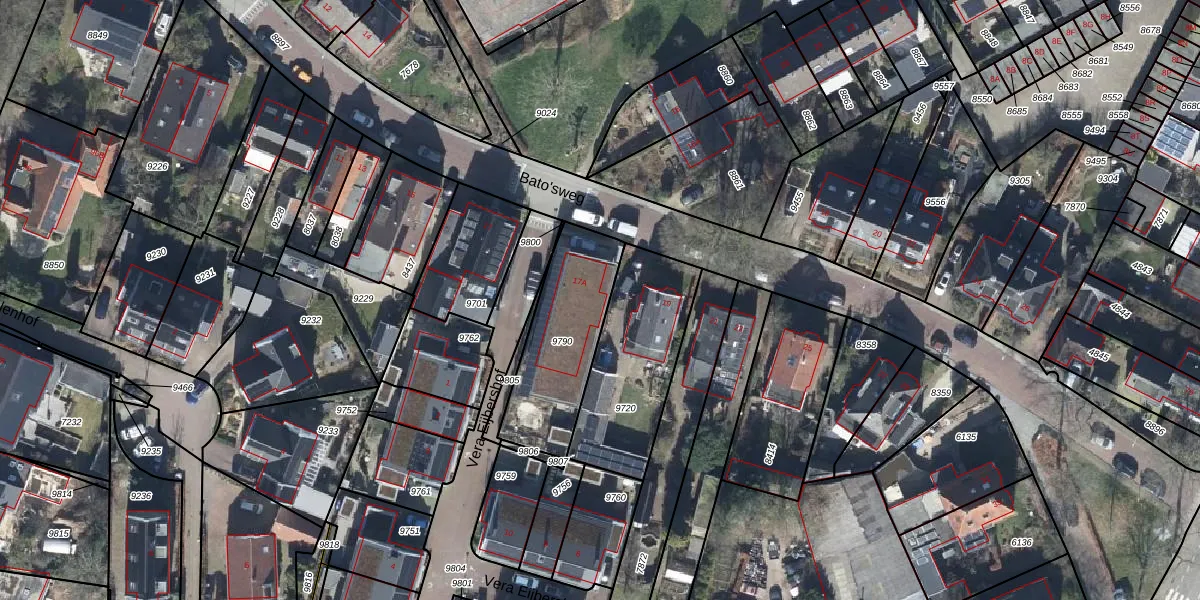 Bato'sweg 17-A is gelegen op kadastraal perceel OTB00D9790. Deze kadastrale aanduiding is uniek en wordt gebruikt door het Kadaster om eigendomsrechten en andere zakelijke rechten vast te leggen. Het perceel maakt onderdeel uit van de kadastrale gemeente Oosterbeek.