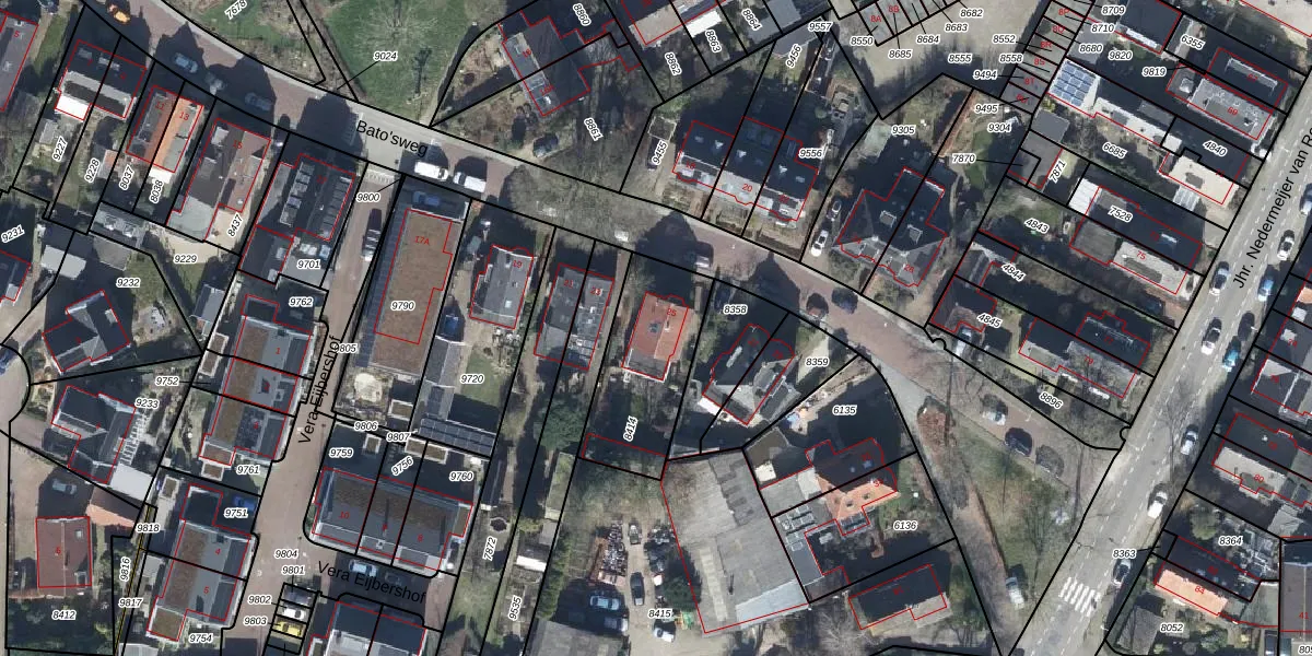 Het perceel waarop Bato'sweg 25 staat heeft een oppervlakte van 420 m². Dit is een groot perceel. De perceeloppervlakte wordt geregistreerd door het Kadaster. Gedetailleerde informatie over de maten van dit perceel kunt u vinden in het rapport Kadastrale kaart met maatvoering van Bato'sweg 25.