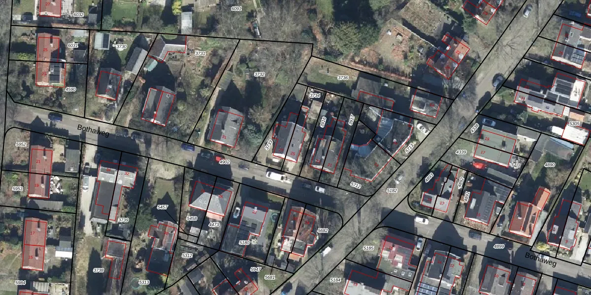 Bothaweg 25 is gelegen op kadastraal perceel OTB00C3734. Deze kadastrale aanduiding is uniek en wordt gebruikt door het Kadaster om eigendomsrechten en andere zakelijke rechten vast te leggen. Het perceel maakt onderdeel uit van de kadastrale gemeente Oosterbeek.