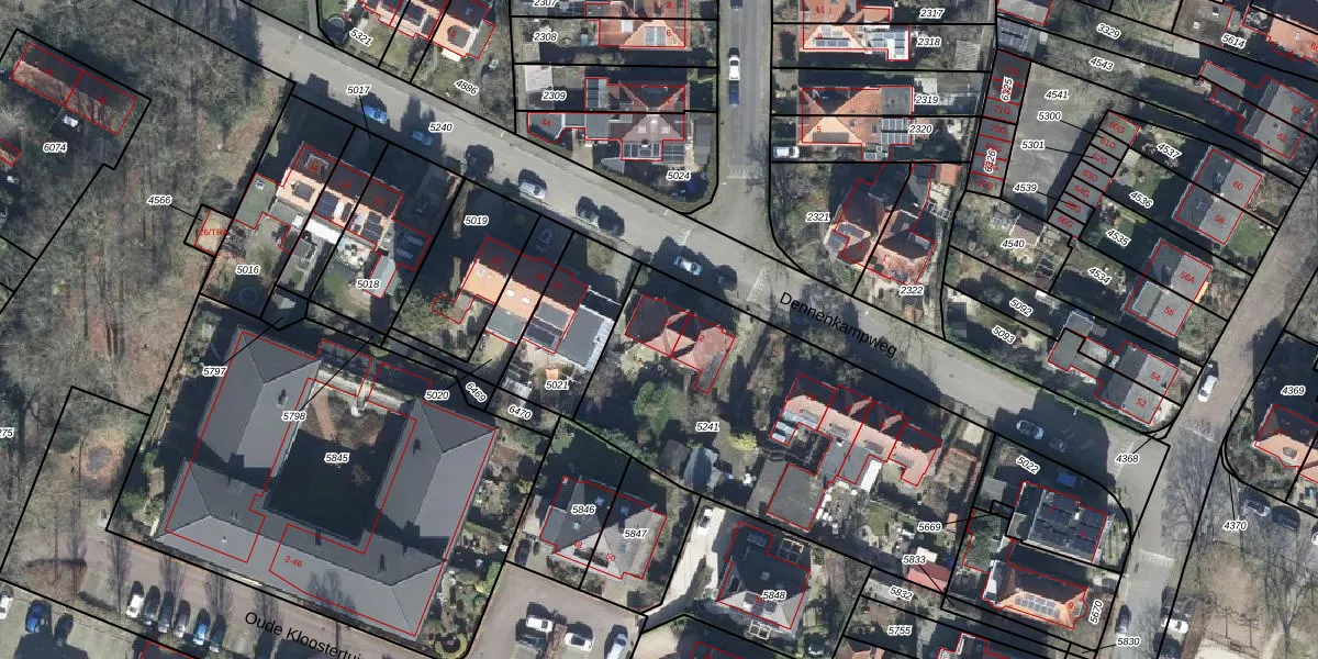 Dennenkampweg 14 is gelegen op kadastraal perceel OTB00C5241. Deze kadastrale aanduiding is uniek en wordt gebruikt door het Kadaster om eigendomsrechten en andere zakelijke rechten vast te leggen. Het perceel maakt onderdeel uit van de kadastrale gemeente Oosterbeek.