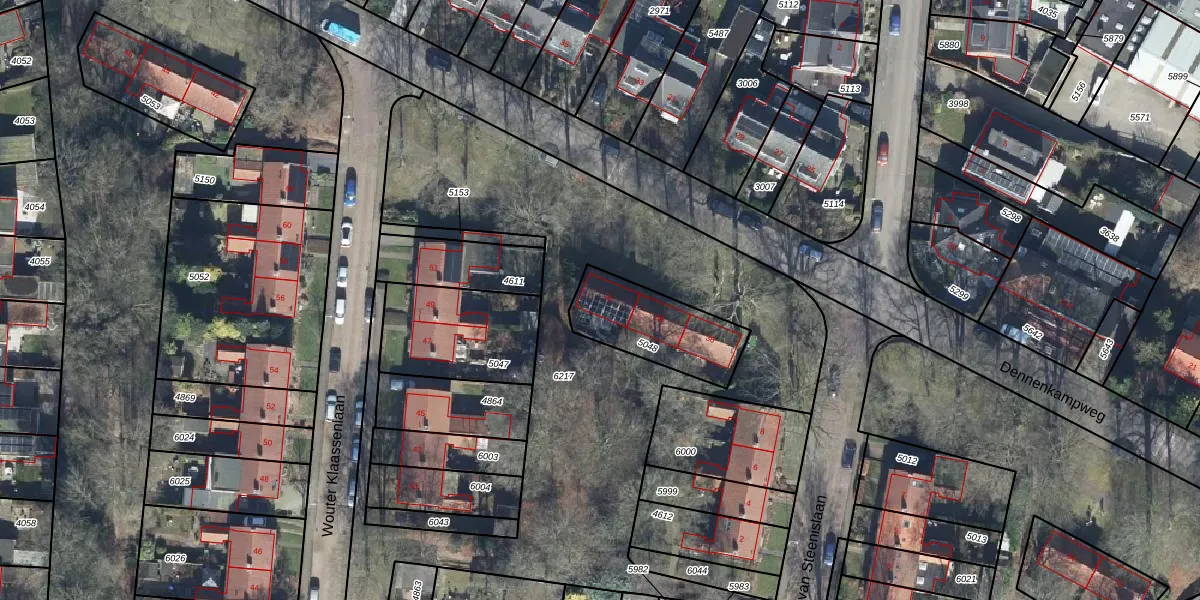 Dennenkampweg 40 is gelegen op kadastraal perceel OTB00C5048. Deze kadastrale aanduiding is uniek en wordt gebruikt door het Kadaster om eigendomsrechten en andere zakelijke rechten vast te leggen. Het perceel maakt onderdeel uit van de kadastrale gemeente Oosterbeek.