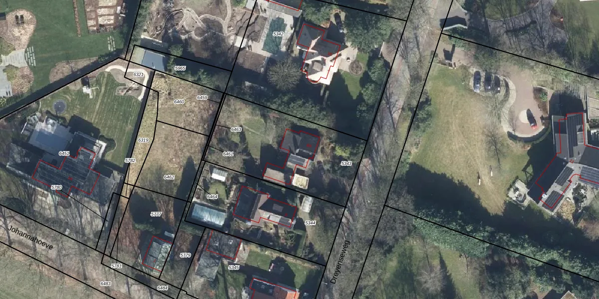 Het perceel waarop Dreyenseweg 8-A staat heeft een oppervlakte van 1150 m². Dit is een zeer groot perceel. De perceeloppervlakte wordt geregistreerd door het Kadaster. Gedetailleerde informatie over de maten van dit perceel kunt u vinden in het rapport Kadastrale kaart met maatvoering van Dreyenseweg 8-A.
