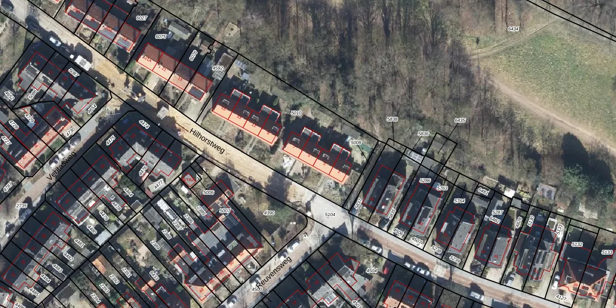 Hilhorstweg 5 is gelegen op kadastraal perceel OTB00C5010. Deze kadastrale aanduiding is uniek en wordt gebruikt door het Kadaster om eigendomsrechten en andere zakelijke rechten vast te leggen. Het perceel maakt onderdeel uit van de kadastrale gemeente Oosterbeek.