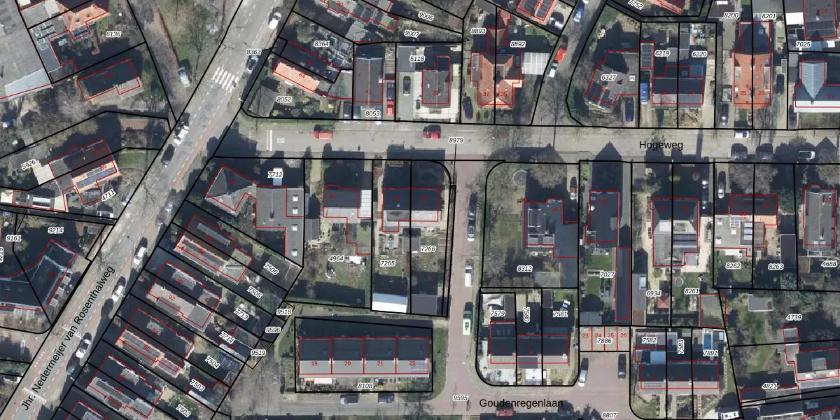 Hogeweg 38 is gelegen op kadastraal perceel OTB00D7266. Deze kadastrale aanduiding is uniek en wordt gebruikt door het Kadaster om eigendomsrechten en andere zakelijke rechten vast te leggen. Het perceel maakt onderdeel uit van de kadastrale gemeente Oosterbeek.