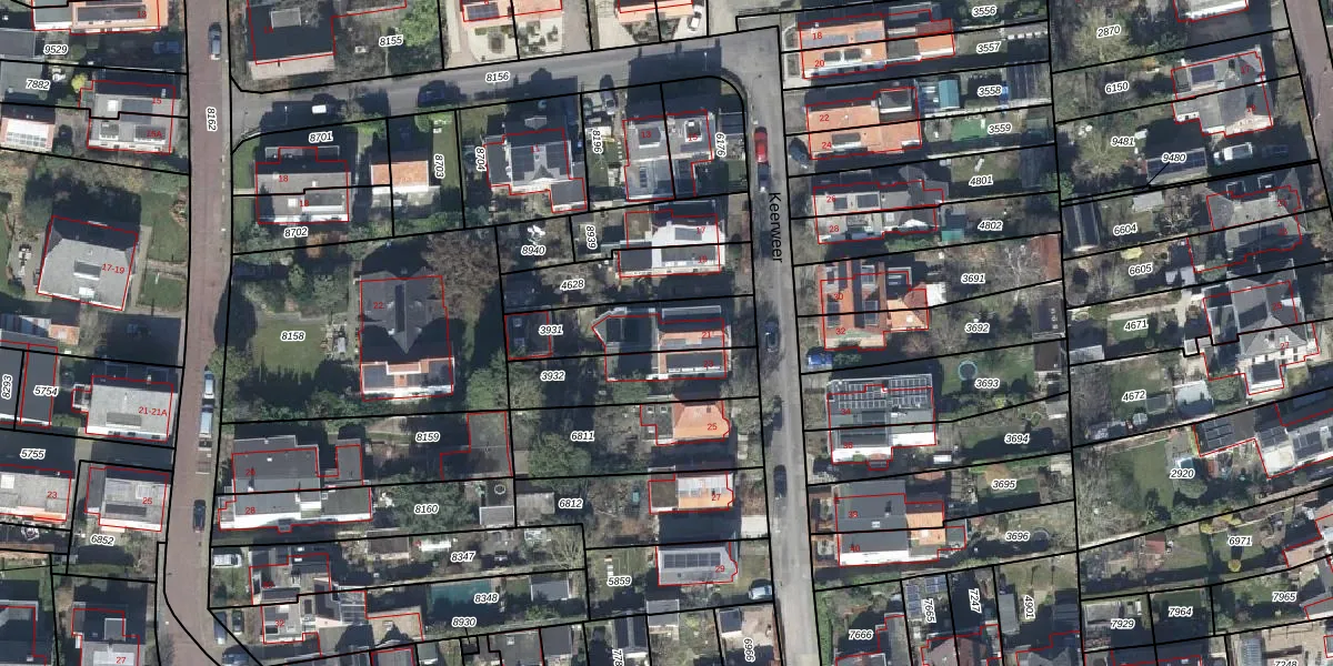 Keerweer 21 is gelegen op kadastraal perceel OTB00D3931. Deze kadastrale aanduiding is uniek en wordt gebruikt door het Kadaster om eigendomsrechten en andere zakelijke rechten vast te leggen. Het perceel maakt onderdeel uit van de kadastrale gemeente Oosterbeek.