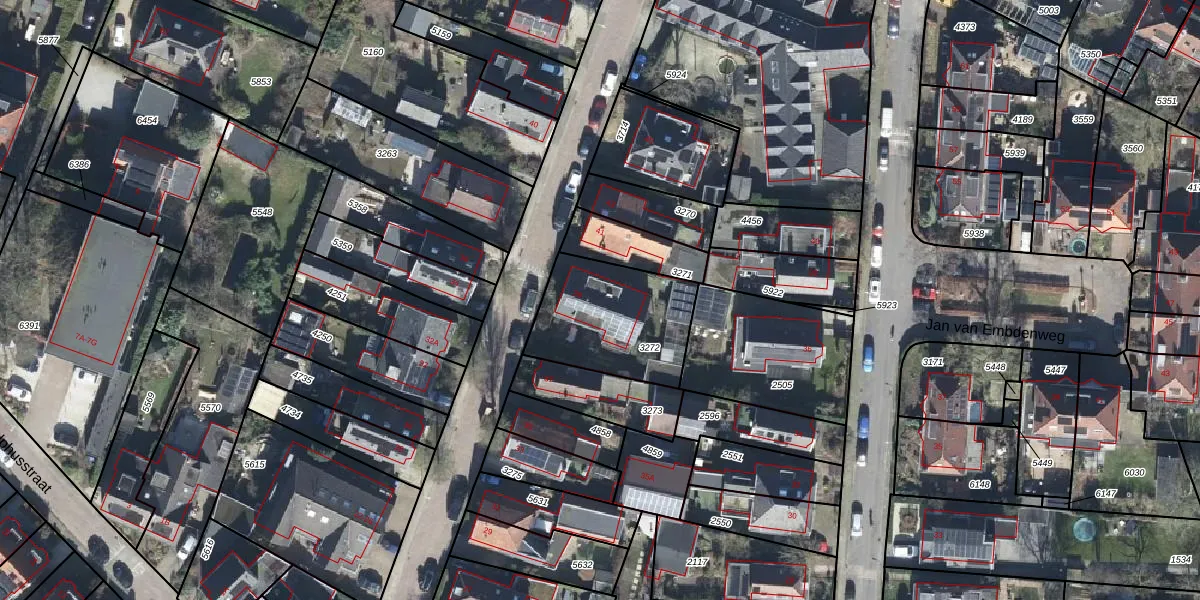 Gebruik de zoekbalk of klik op een perceel voor informatie over de adressen binnen dit perceel.