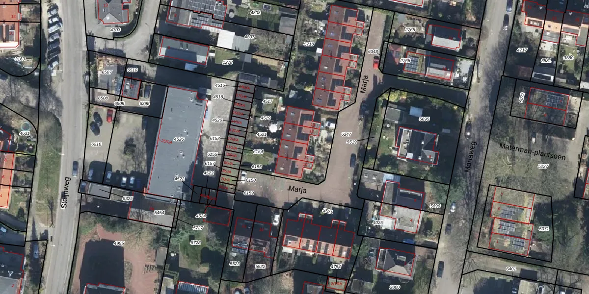Het perceel waarop Marja 17 staat heeft een oppervlakte van 1670 m². Dit is een zeer groot perceel. De perceeloppervlakte wordt geregistreerd door het Kadaster. Gedetailleerde informatie over de maten van dit perceel kunt u vinden in het rapport Kadastrale kaart met maatvoering van Marja 17.