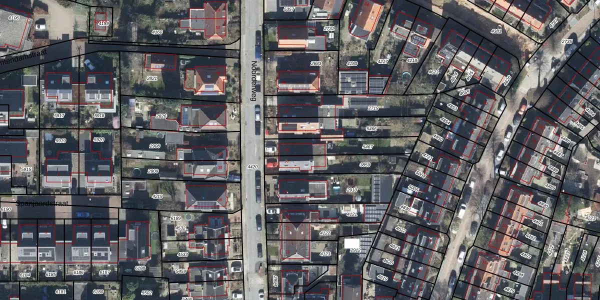 Gebruik de zoekbalk of klik op een perceel voor informatie over de adressen binnen dit perceel.
