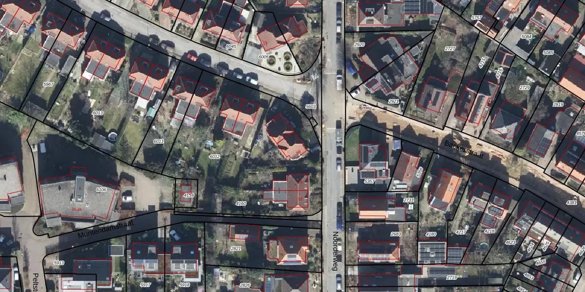 Het perceel waarop Noorderweg 56 staat heeft een oppervlakte van 1970 m². Dit is een zeer groot perceel. De perceeloppervlakte wordt geregistreerd door het Kadaster. Gedetailleerde informatie over de maten van dit perceel kunt u vinden in het rapport Kadastrale kaart met maatvoering van Noorderweg 56.