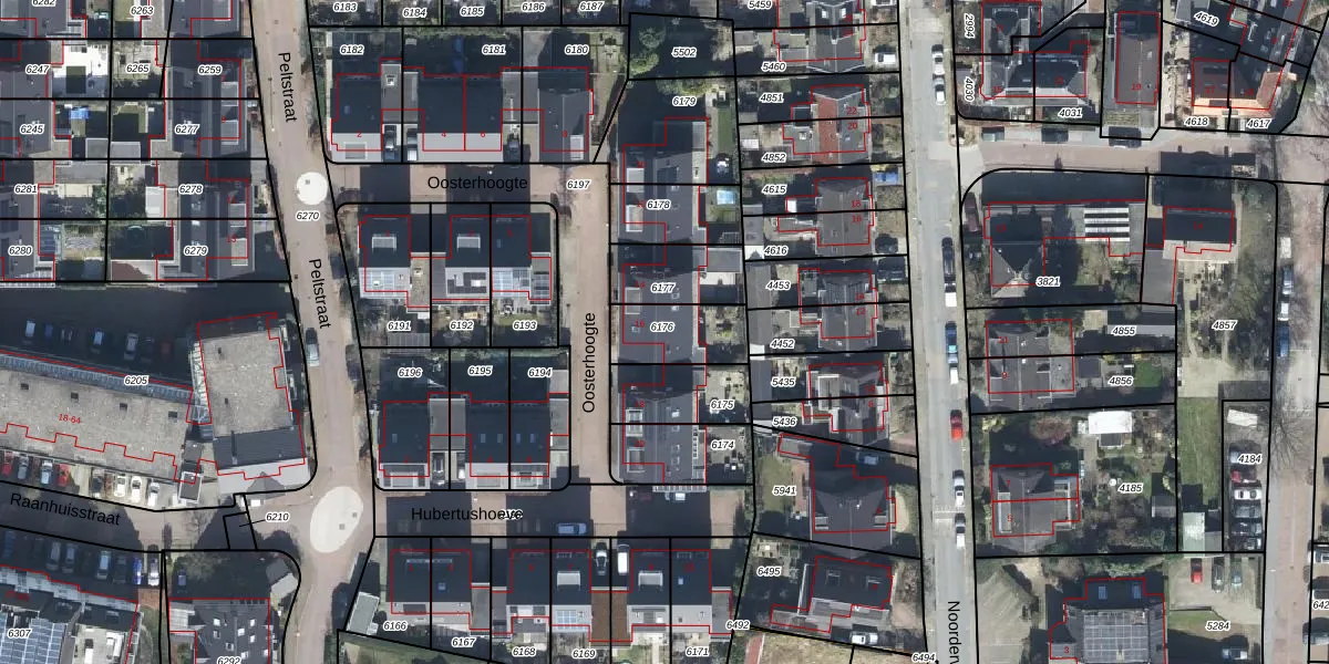 Gebruik de zoekbalk of klik op een perceel voor informatie over de adressen binnen dit perceel.