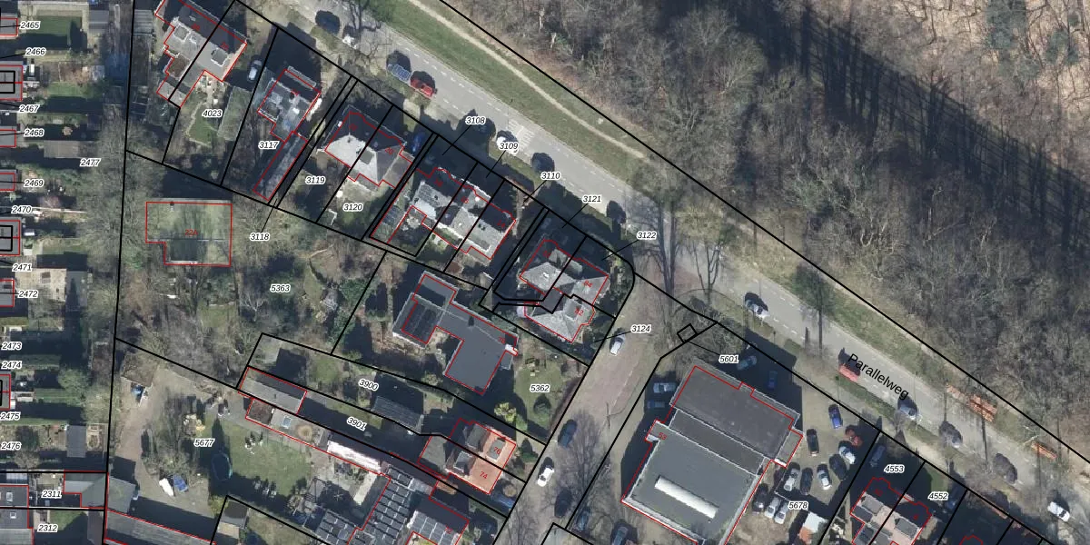 Parallelweg 12 is gelegen op kadastraal perceel OTB00C3121. Deze kadastrale aanduiding is uniek en wordt gebruikt door het Kadaster om eigendomsrechten en andere zakelijke rechten vast te leggen. Het perceel maakt onderdeel uit van de kadastrale gemeente Oosterbeek.