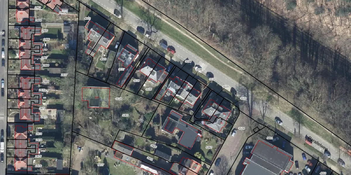 Parallelweg 18 is gelegen op kadastraal perceel OTB00C3108. Deze kadastrale aanduiding is uniek en wordt gebruikt door het Kadaster om eigendomsrechten en andere zakelijke rechten vast te leggen. Het perceel maakt onderdeel uit van de kadastrale gemeente Oosterbeek.