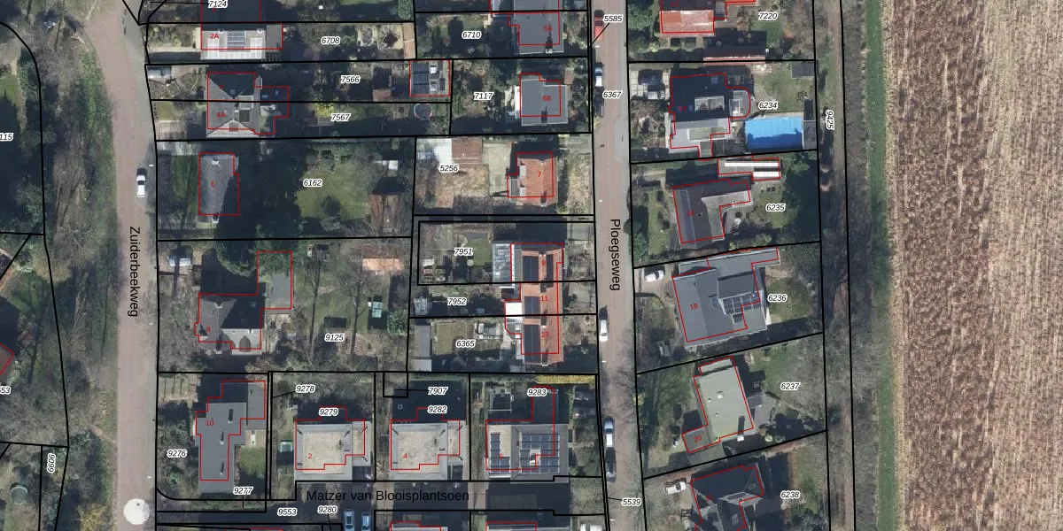 Gebruik de zoekbalk of klik op een perceel voor informatie over de adressen binnen dit perceel.