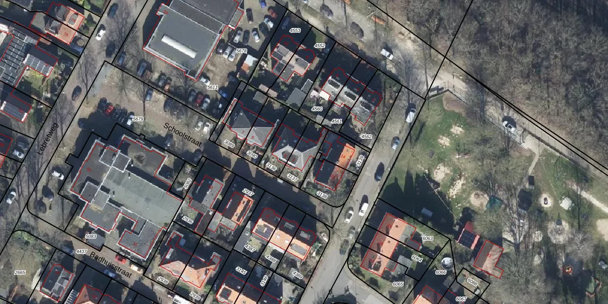 Het perceel waarop Schoolstraat 1 staat heeft een oppervlakte van 166 m². Dit is een middelgroot perceel. De perceeloppervlakte wordt geregistreerd door het Kadaster. Gedetailleerde informatie over de maten van dit perceel kunt u vinden in het rapport Kadastrale kaart met maatvoering van Schoolstraat 1.