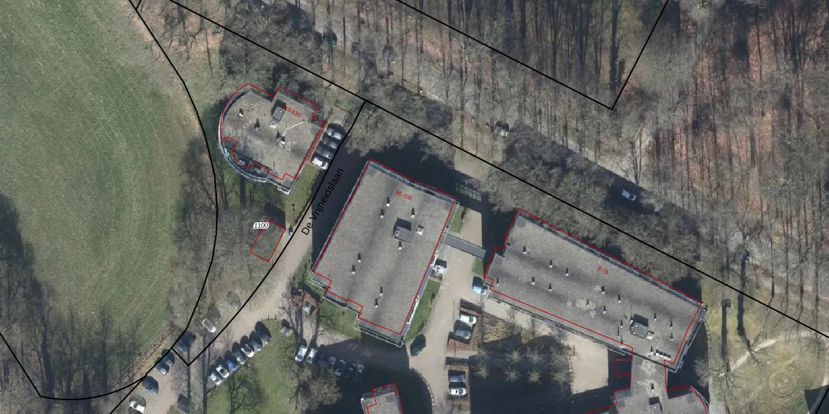 Het perceel waarop Sonnenberglaan 100 staat heeft een oppervlakte van 2,1 ha. Dit is een zeer groot perceel. De perceeloppervlakte wordt geregistreerd door het Kadaster. Gedetailleerde informatie over de maten van dit perceel kunt u vinden in het rapport Kadastrale kaart met maatvoering van Sonnenberglaan 100.