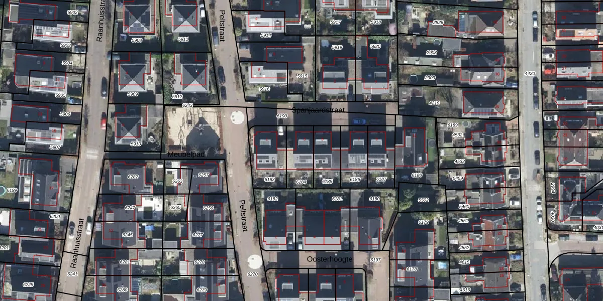 Het perceel waarop Spanjaardstraat 3 staat heeft een oppervlakte van 186 m². Dit is een middelgroot perceel. De perceeloppervlakte wordt geregistreerd door het Kadaster. Gedetailleerde informatie over de maten van dit perceel kunt u vinden in het rapport Kadastrale kaart met maatvoering van Spanjaardstraat 3.