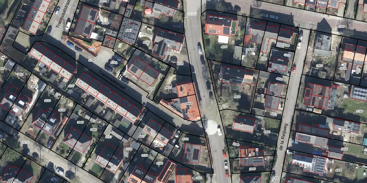 Gebruik de zoekbalk of klik op een perceel voor informatie over de adressen binnen dit perceel.