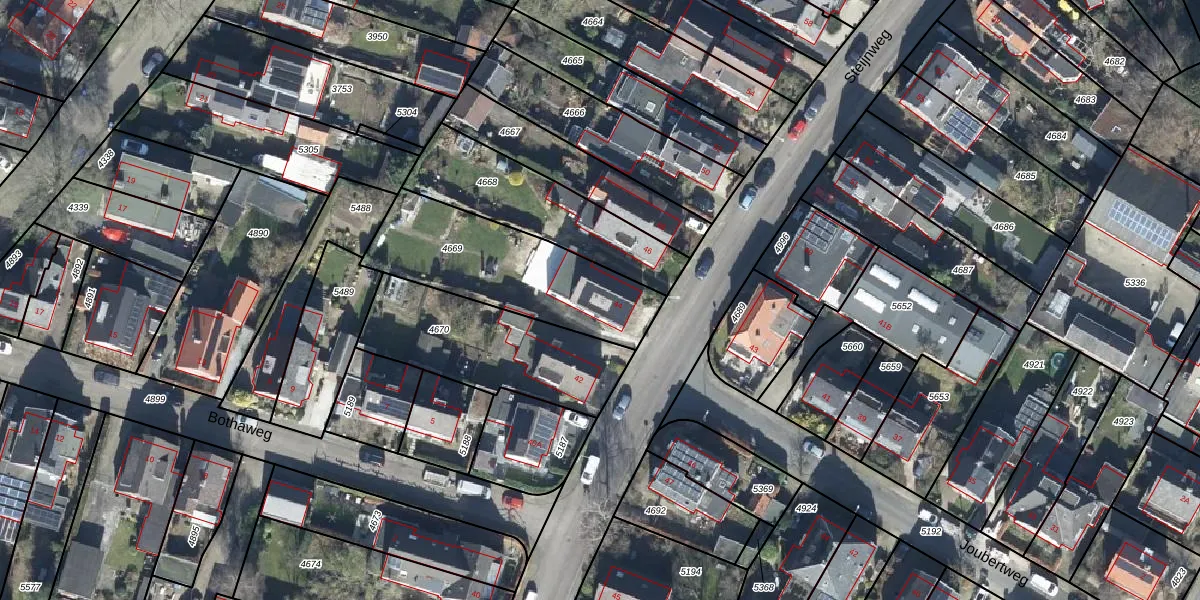 Gebruik de zoekbalk of klik op een perceel voor informatie over de adressen binnen dit perceel.