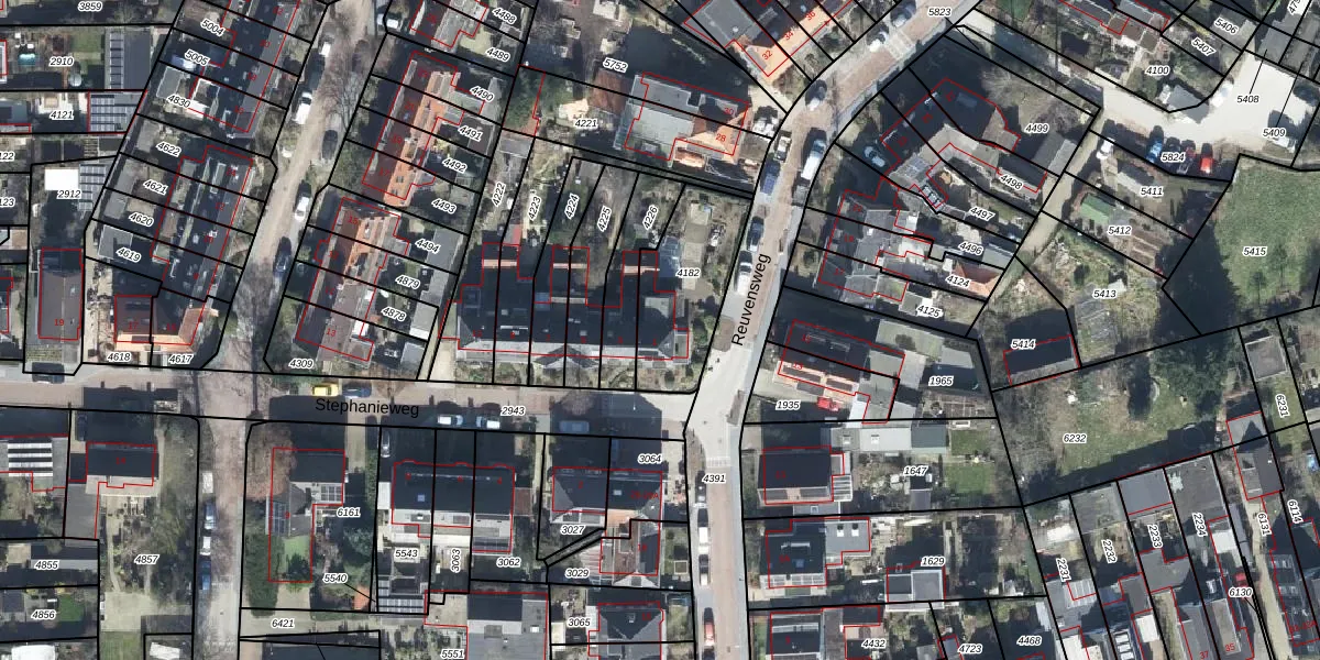 Gebruik de zoekbalk of klik op een perceel voor informatie over de adressen binnen dit perceel.