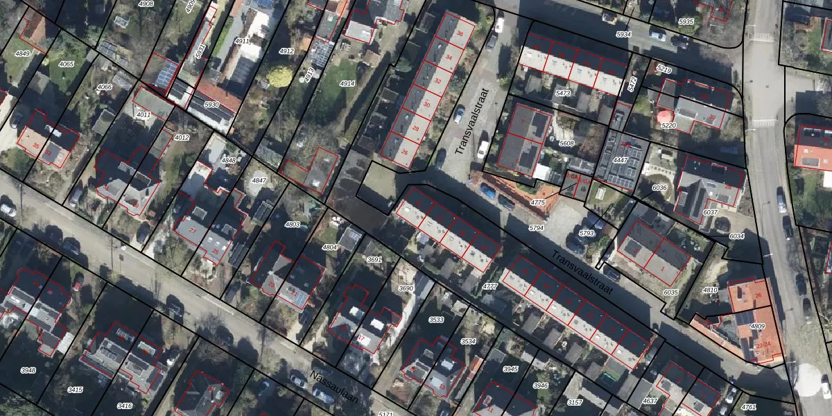 Het perceel waarop Transvaalstraat 24 staat heeft een oppervlakte van 2245 m². Dit is een zeer groot perceel. De perceeloppervlakte wordt geregistreerd door het Kadaster. Gedetailleerde informatie over de maten van dit perceel kunt u vinden in het rapport Kadastrale kaart met maatvoering van Transvaalstraat 24.