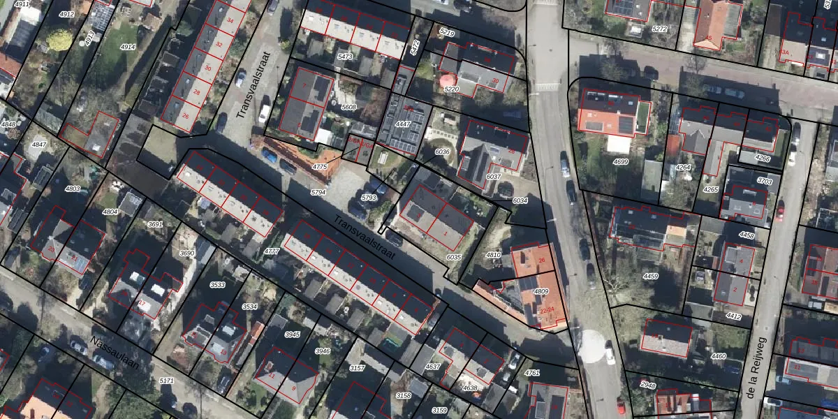 Het perceel waarop Transvaalstraat 3 staat heeft een oppervlakte van 404 m². Dit is een groot perceel. De perceeloppervlakte wordt geregistreerd door het Kadaster. Gedetailleerde informatie over de maten van dit perceel kunt u vinden in het rapport Kadastrale kaart met maatvoering van Transvaalstraat 3.