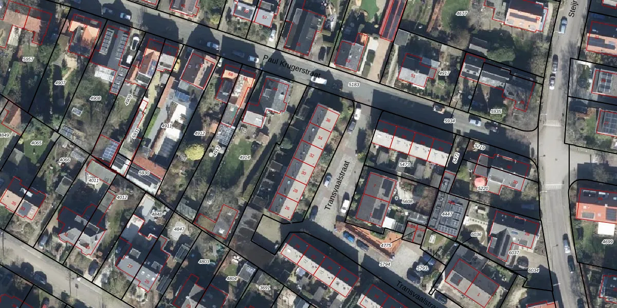 Transvaalstraat 32 is gelegen op kadastraal perceel OTB00C4777. Deze kadastrale aanduiding is uniek en wordt gebruikt door het Kadaster om eigendomsrechten en andere zakelijke rechten vast te leggen. Het perceel maakt onderdeel uit van de kadastrale gemeente Oosterbeek.