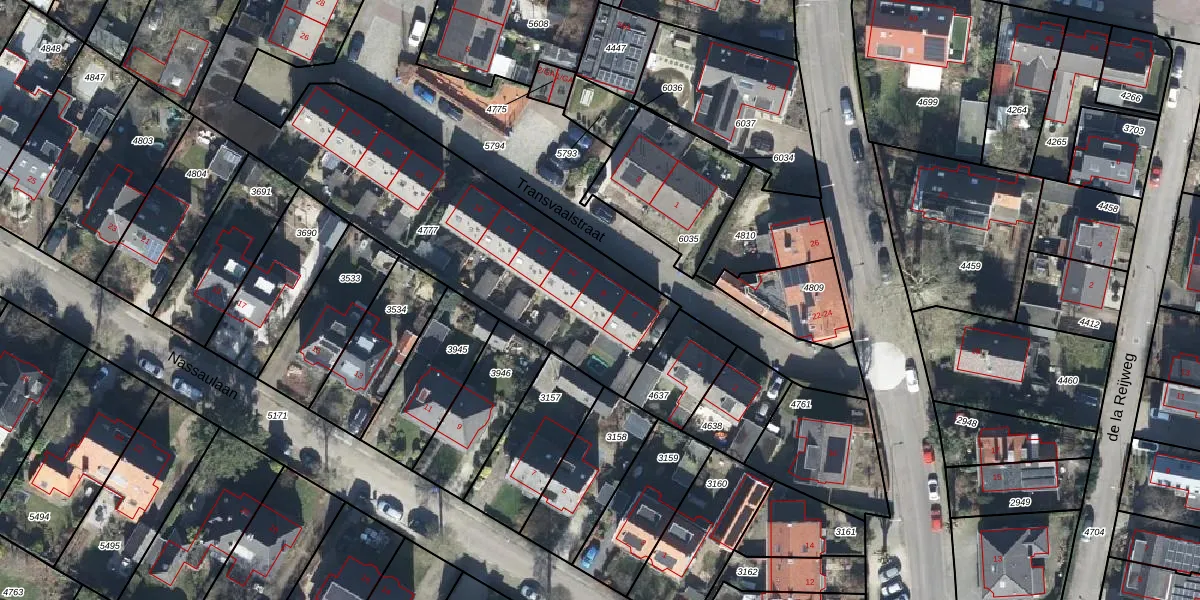 Het perceel waarop Transvaalstraat 8 staat heeft een oppervlakte van 2245 m². Dit is een zeer groot perceel. De perceeloppervlakte wordt geregistreerd door het Kadaster. Gedetailleerde informatie over de maten van dit perceel kunt u vinden in het rapport Kadastrale kaart met maatvoering van Transvaalstraat 8.